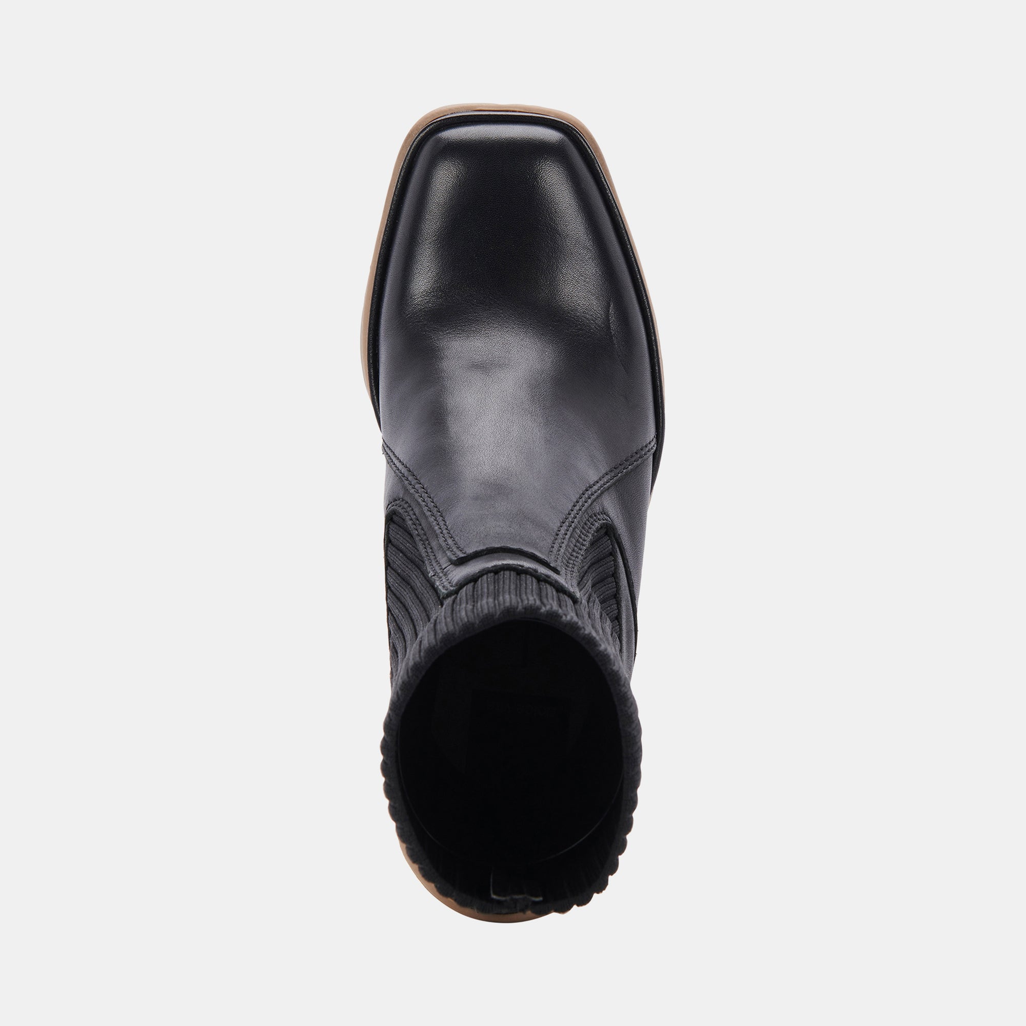 - Leather + Knit Upper