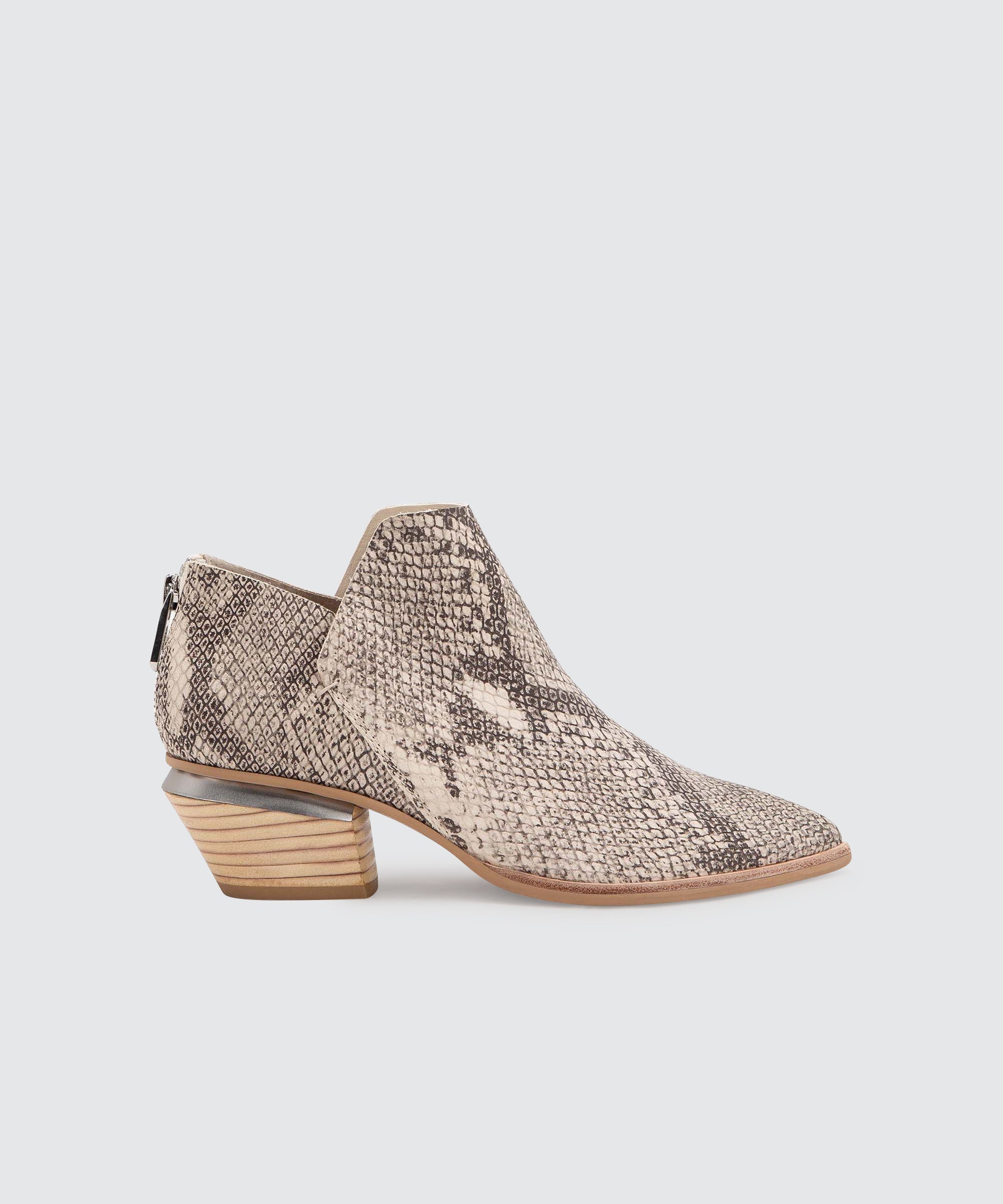 MARCA BOOTIES WHITE BLACK SNAKE PRINT LEATHER